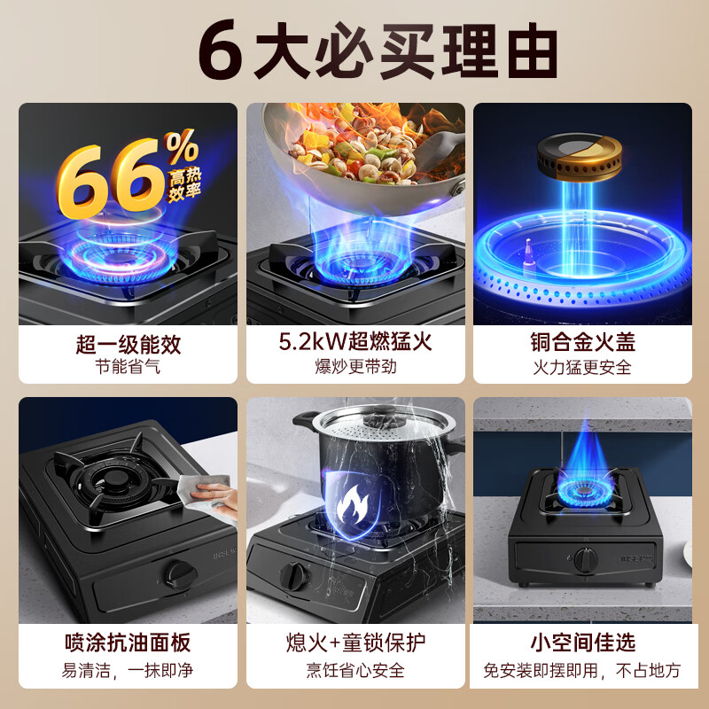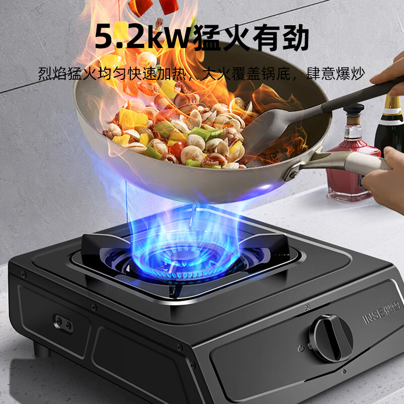樱雪(INSE)燃气灶单眼灶具 5.0kW猛火台式煤气炉单灶灶台 大火力黑色喷涂耐脏易清洁面板JZY-T2451(G)W液化气