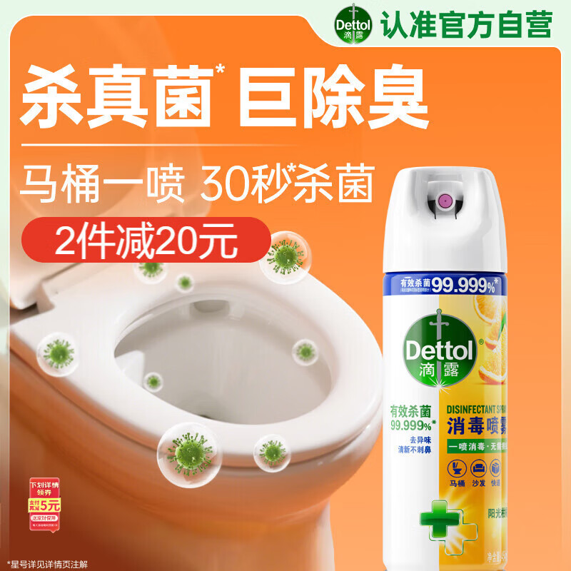 滴露(Dettol)消毒喷雾454ml除臭喷雾鞋子除臭杀菌喷雾马桶消毒柑橘甲流感