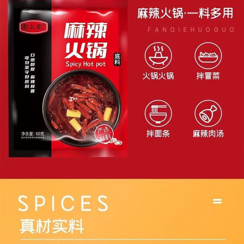 麻辣火锅底料汤料冒菜麻辣烫串串关东煮料独立包装袋装家用 60克麻辣底料*1包