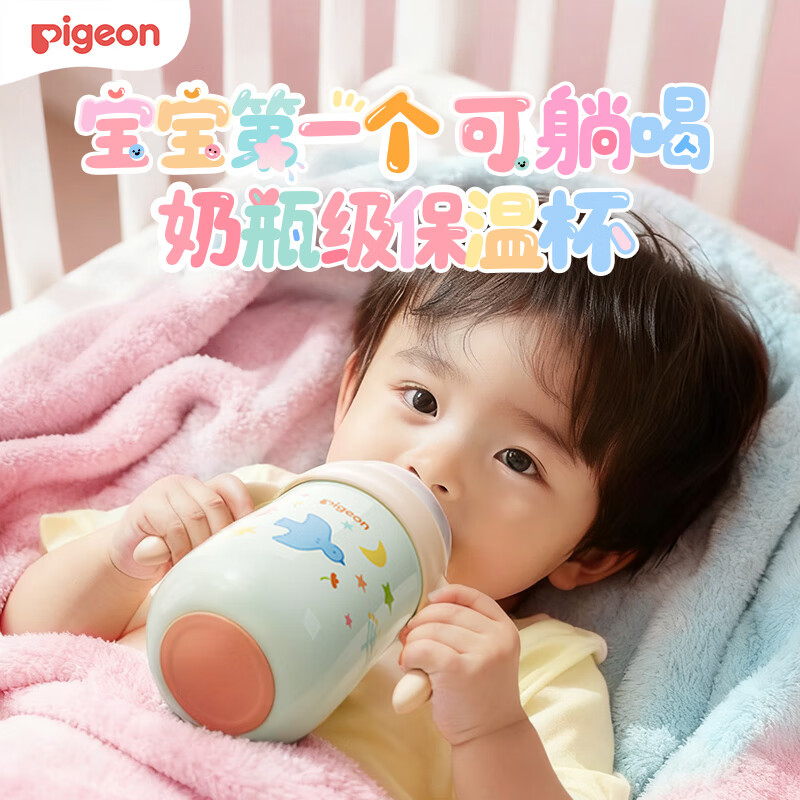贝亲(Pigeon)宝宝儿童彩绘保温杯水杯保温奶瓶吸管学饮杯防呛防漏300ml 12月+