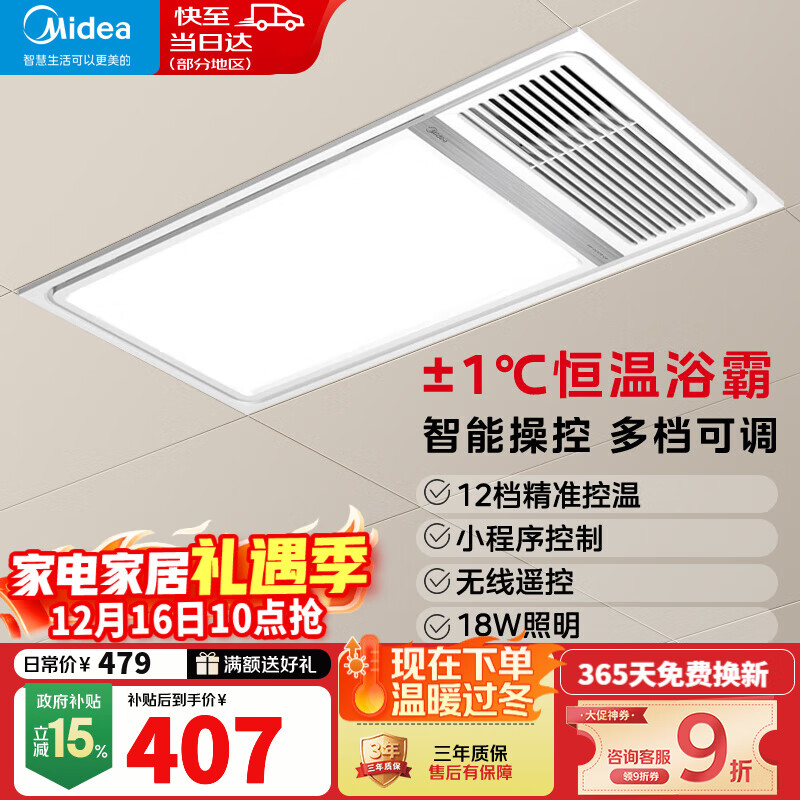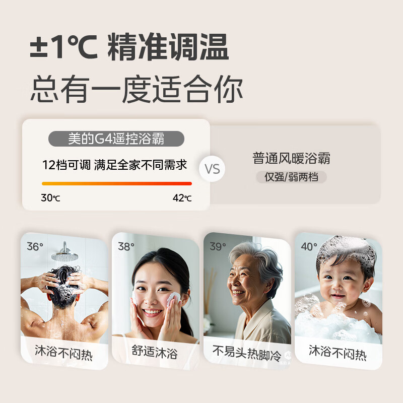 美的(Midea)风暖式浴霸暖风灯照明排气五合一体机集成吊顶无线卫生间浴室机G3 G4遥控丨12档调温丨免布线