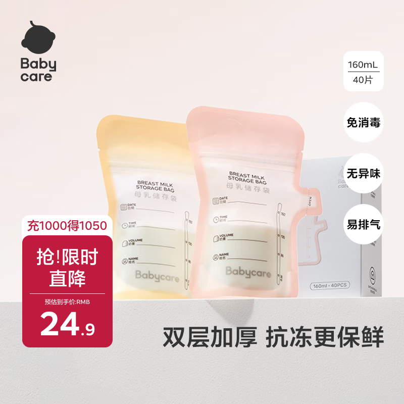 babycare一次性储奶袋装奶保鲜袋母乳储存袋加厚防漏 160ML*40片壶口款