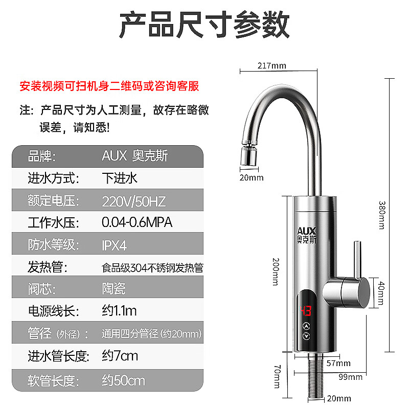 奥克斯电热水龙头即热式快速热水龙头加热器变频恒温厨房宝阳台家用热水器ADL-3AGT2X不锈钢漏保