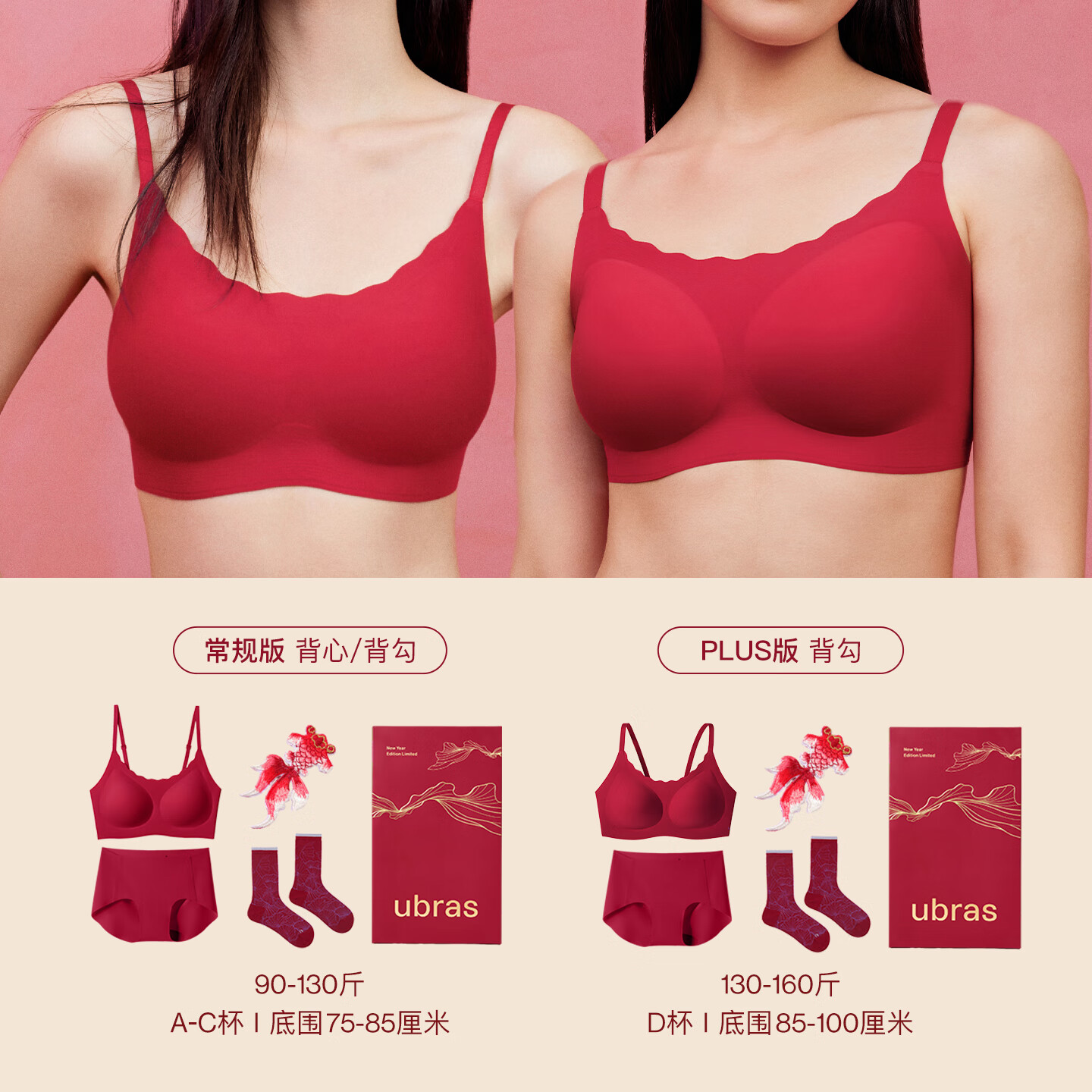 ubras新款大红盒无尺码鸿运浪花领免拆文胸内衣礼盒本命年马年-常规版