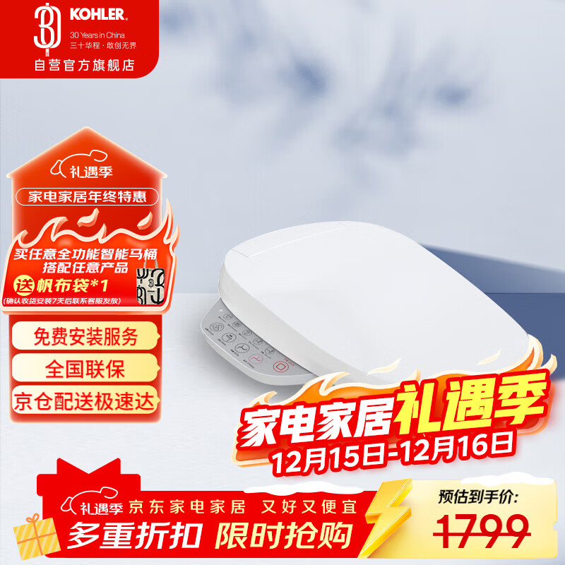 科勒(KOHLER)智能马桶盖智能坐便盖清舒宝C3-149恒动速热式全功能K-18649T-0