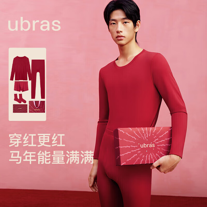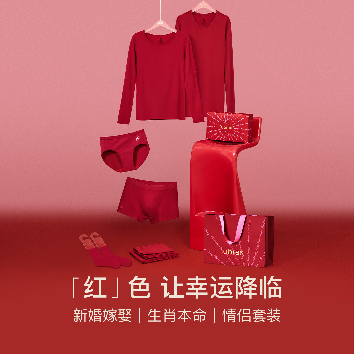 ubras大红盒新款男士羊毛保暖内衣肌底衣礼盒套装情侣结婚本命年马年XL