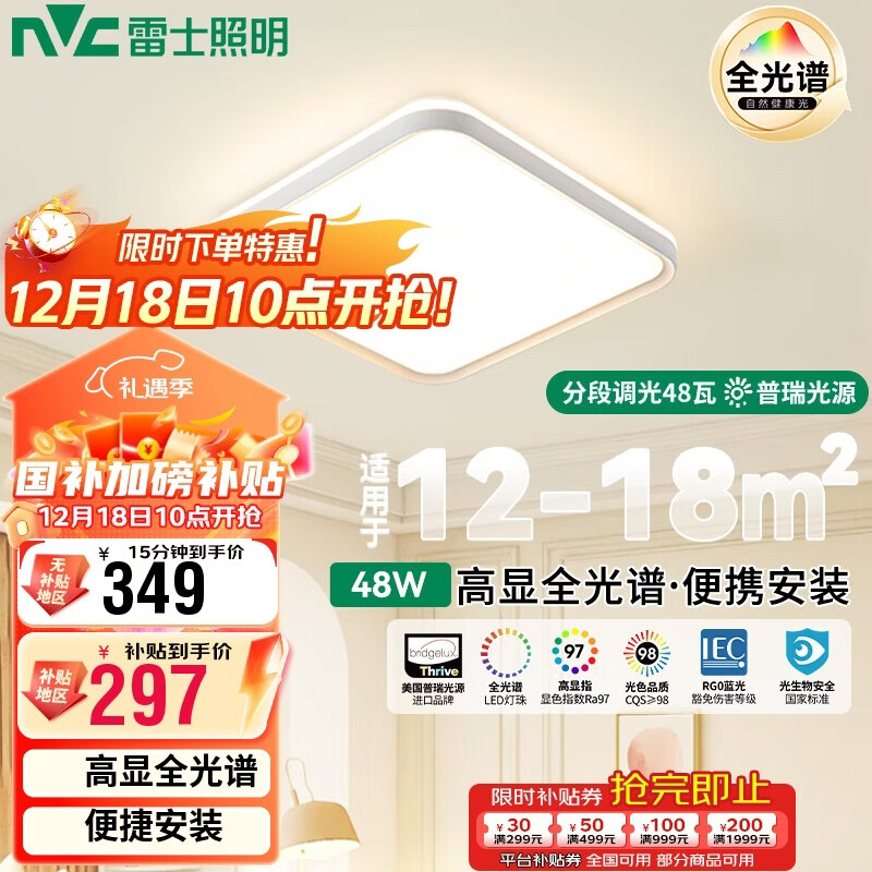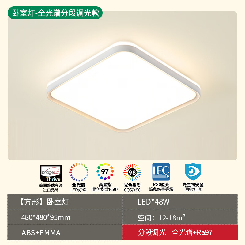 雷士照明(NVC)三色调光LED吸顶灯全光谱快装小白灯20㎡内适用48W