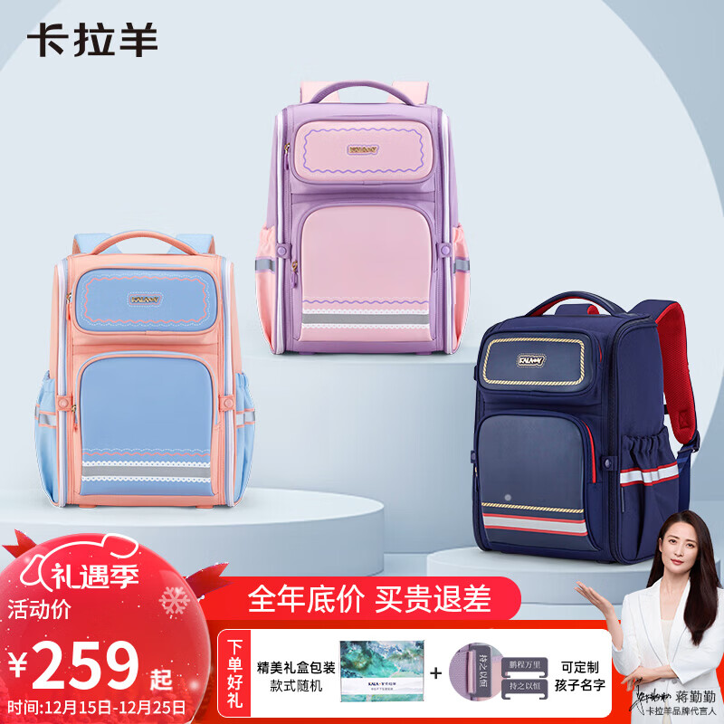 卡拉羊【蒋勤勤代言】书包小学生1-3-6年级防下坠减负大嘴书包儿童书包 【22L】紫色|身高135cm以上