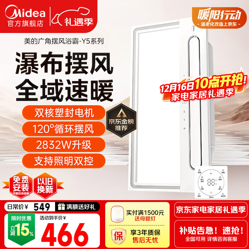 美的(Midea)浴霸暖风照明排气一体摆风速暖浴室取暖器卫生间灯集成吊顶Y5触摸