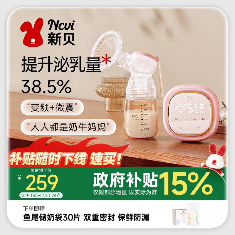 新贝吸奶器 电动吸奶器无痛全自动 拔奶器 大吸力便携吸乳器8135