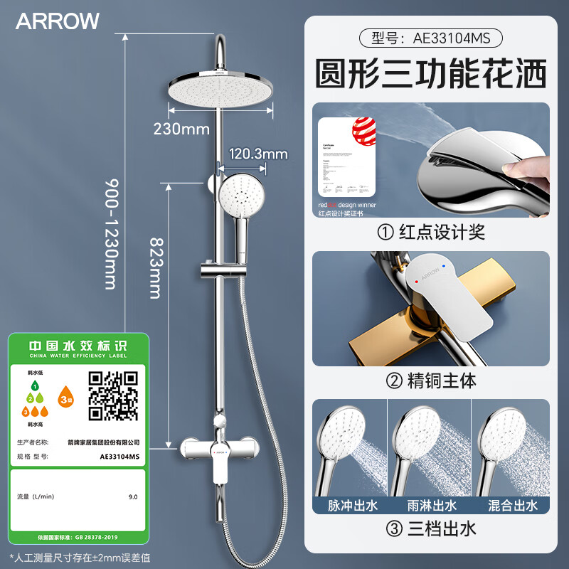 箭牌(ARROW)淋浴花洒套装 精铜龙头增压花洒喷头手持花洒全套莲蓬头