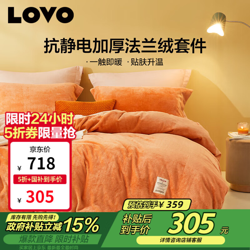 LOVO罗莱 法兰绒牛奶绒四件套 A级抗静电加厚床单被套220*240cm