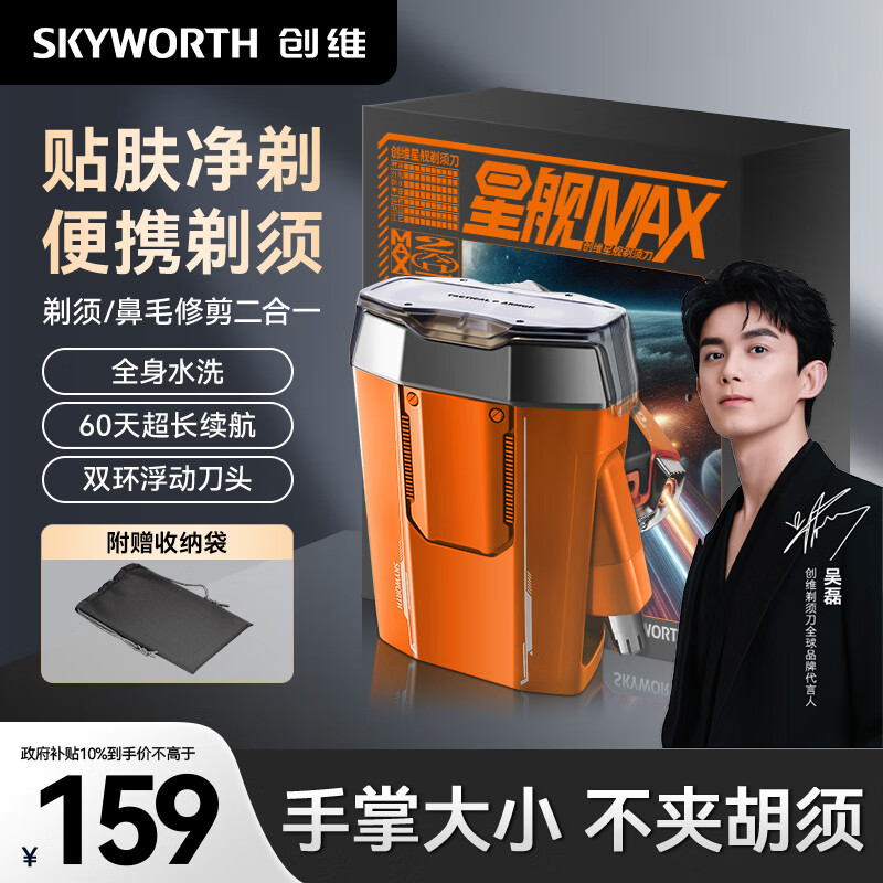 创维【吴磊同款】星舰剃须刀刮胡刀 电动男士迷你便携剃须刀小型刮胡刀剃须干净全身水洗送男友星际橙
