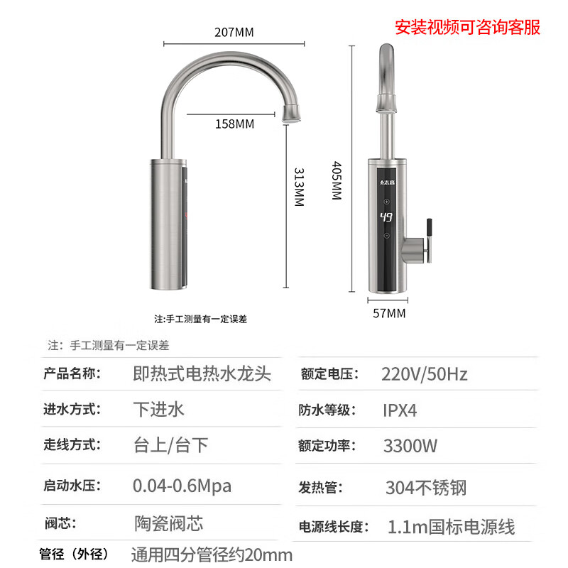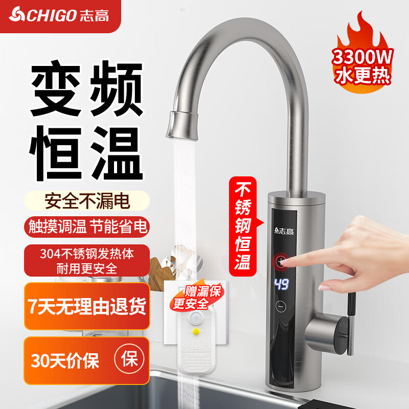 志高(CHIGO)不锈钢机身电热水龙头变频恒温速热家用冷热两用电热水器下进水即热式 ZG-KBS31B