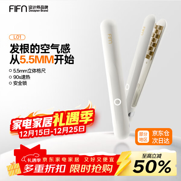FIFN玉米夹蓬松夹板男士垫发根精油涂层不伤发高颅顶小型便携宿舍可用烫发直板夹 米白色