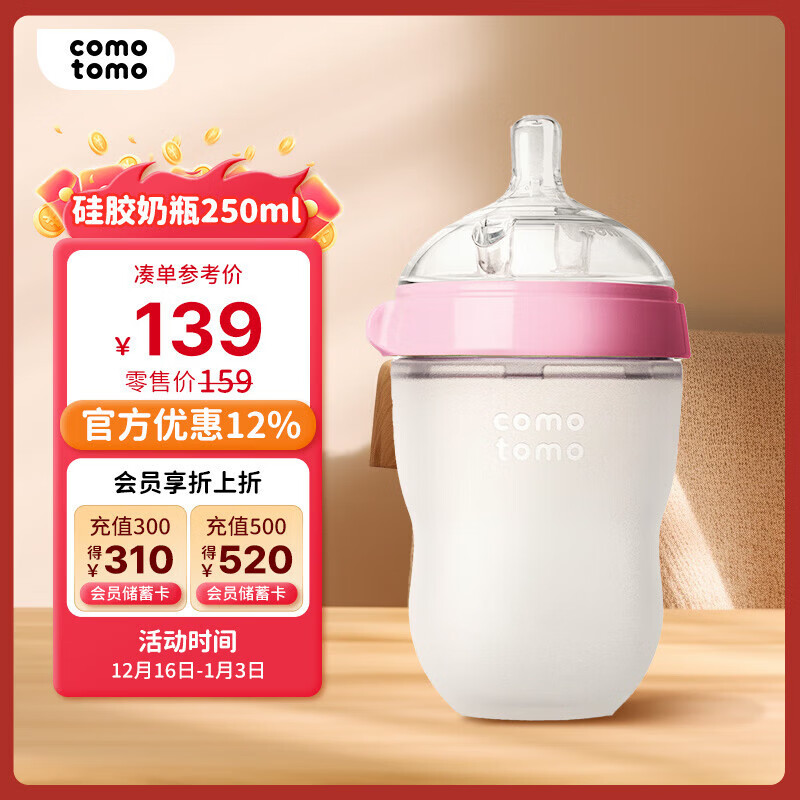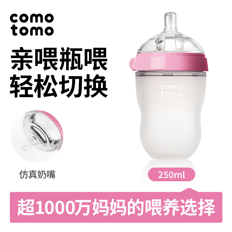 可么多么(como tomo)奶瓶婴儿奶瓶新生儿断奶仿母乳硅胶奶瓶3-6个月250ml粉