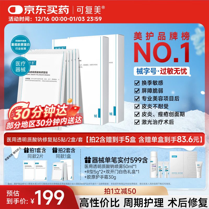 可复美医用透明质酸钠修复贴椭圆型(25g*5片/盒*2盒)