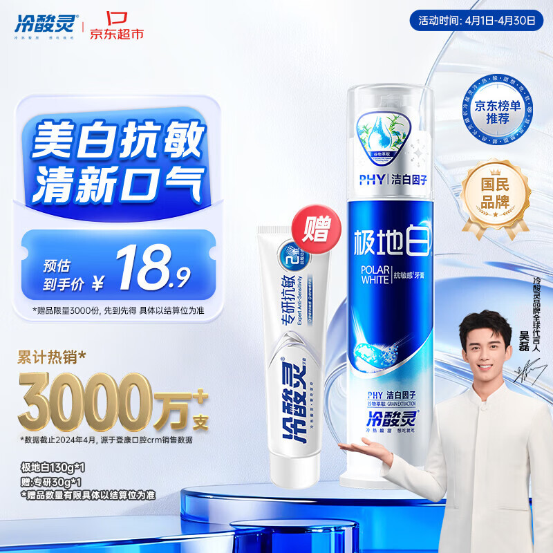 冷酸灵极地白泵式牙膏抗敏感美白牙齿海洋薄荷香 130g【吴磊推荐】