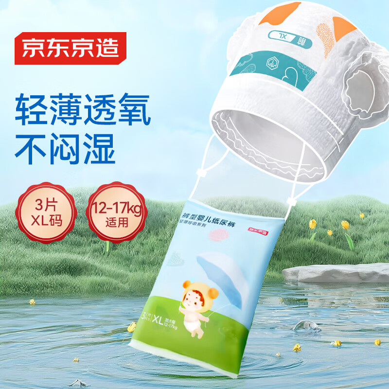 京东京造婴儿拉拉裤日用透气 裤型纸尿裤 轻薄呼吸系列XL码3片(12-17kg)