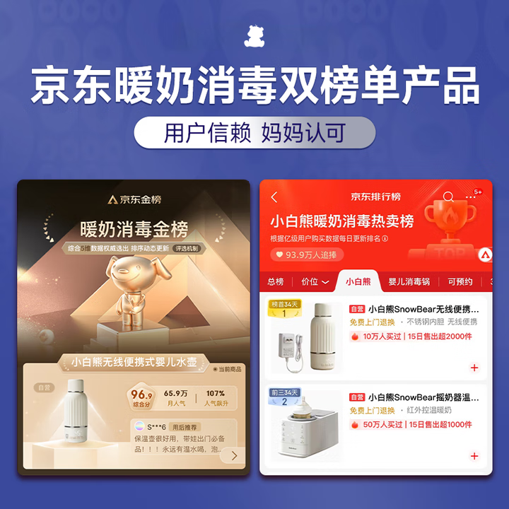 小白熊无线便携恒温杯婴儿水壶保温儿童外出泡奶电热杯带快充500mL 5076