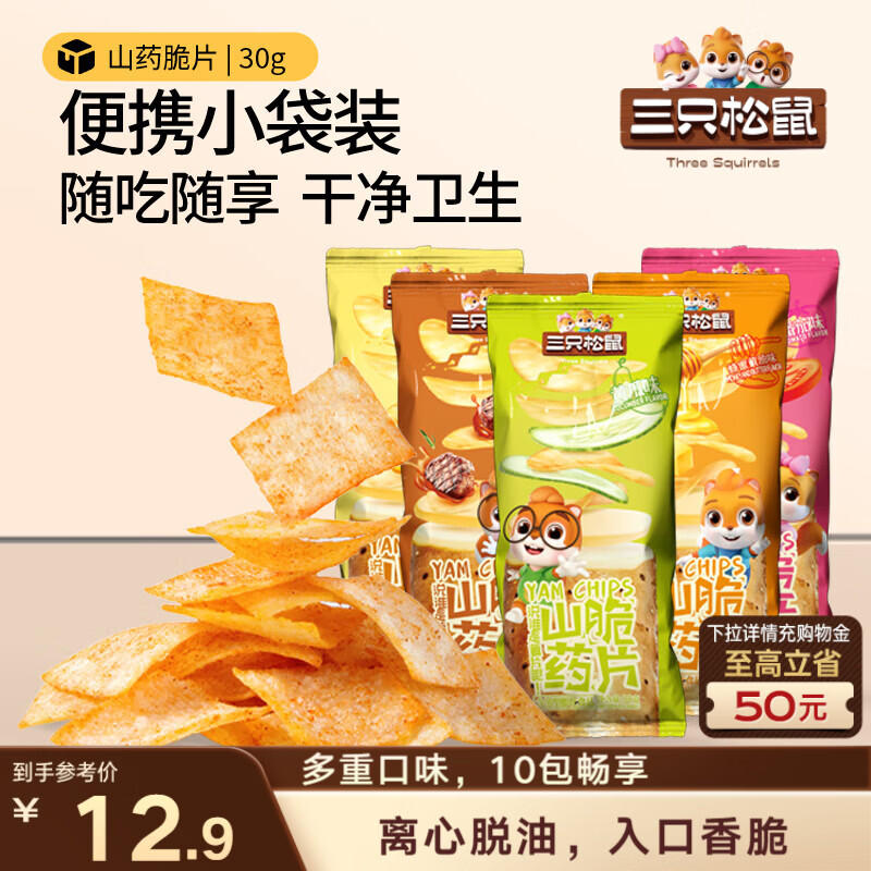 三只松鼠山药脆片混合口味30g*10袋膨化怀旧零食薯片休闲追剧独立小包装