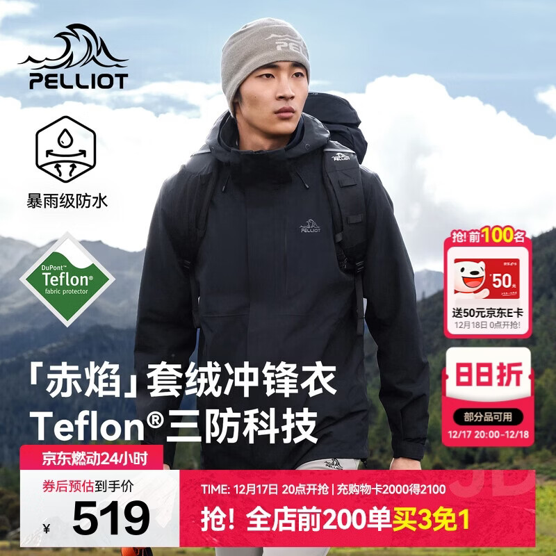 伯希和(Pelliot)【赤焰】冲锋衣男女机能三合一户外秋冬保暖防水外套115301063黑L