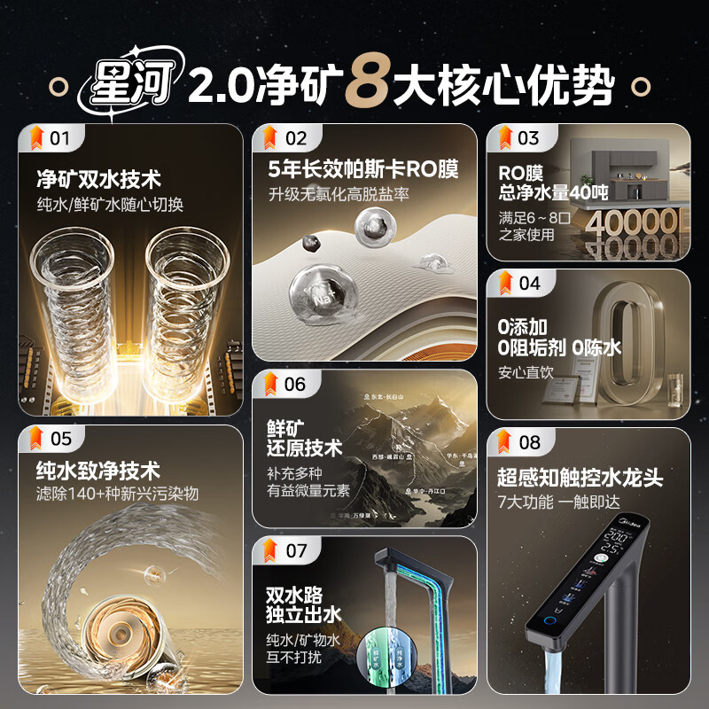 美的(Midea)家用净水机星河2.0净矿净水器双水直饮1000G5年RO矿物质0阻垢剂杀菌反渗透厨下式净饮pro升级系列