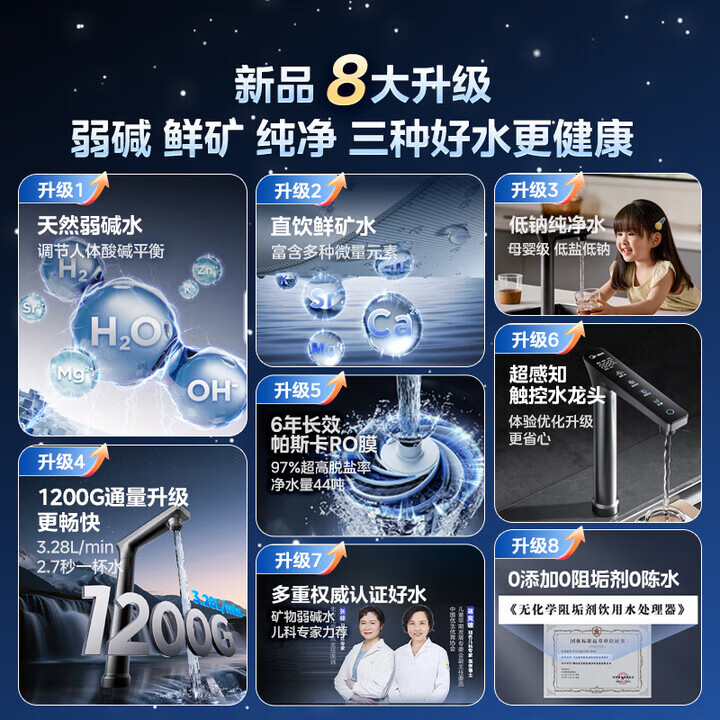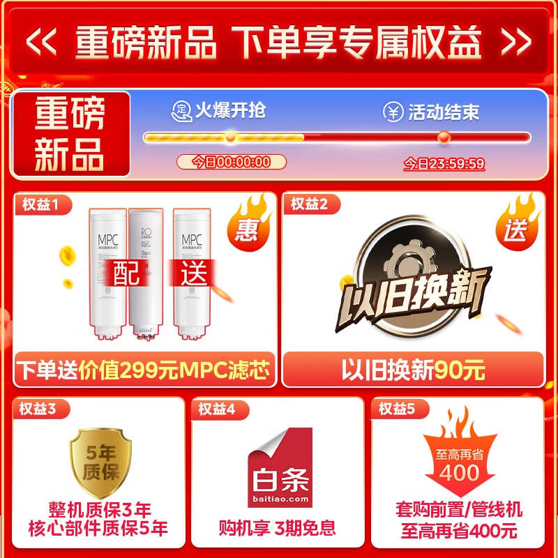美的家用净水机星河3.0弱碱净水器三水直饮矿物质1200G 0阻垢剂 反渗透厨下式净饮机pro升级款政府补贴