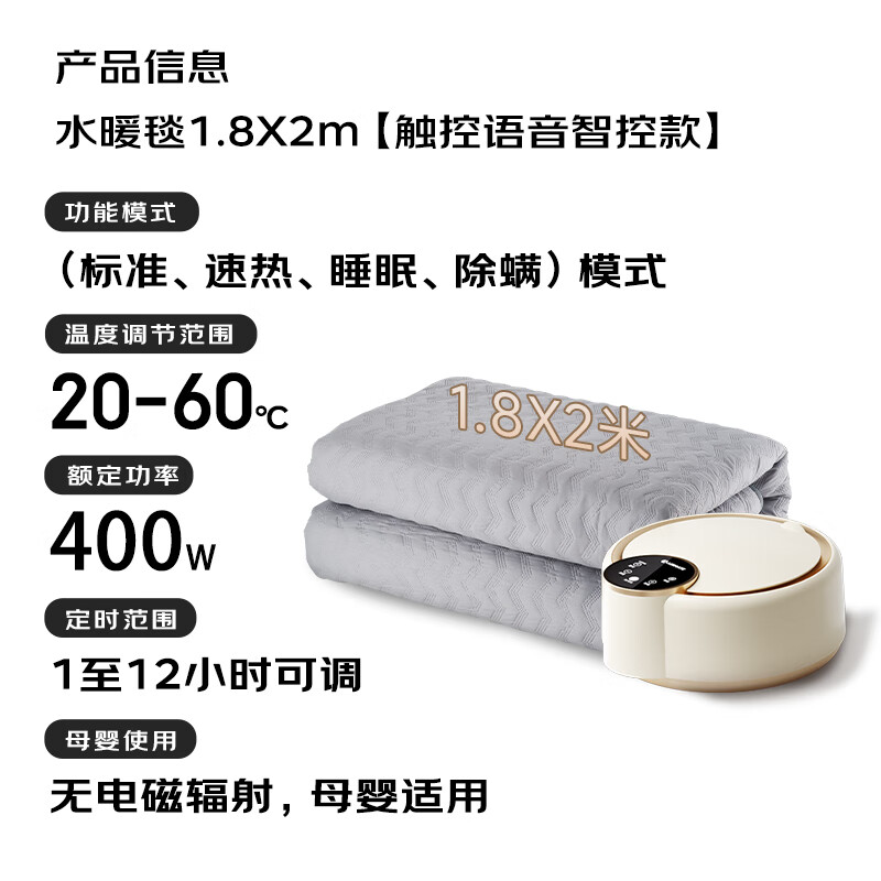 艾美特(AIRMATE)【高温保护】水暖毯双人电褥子家用调温除湿除螨水循环床垫定时恒温电热毯1.8*2米 TWED05-07