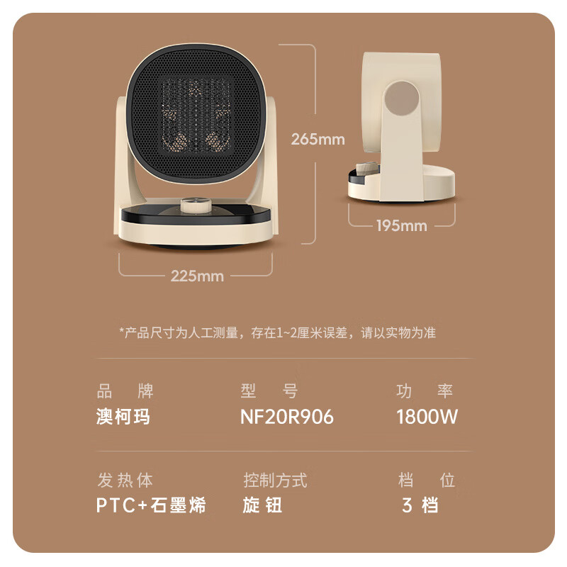 澳柯玛(AUCMA)石墨烯暖风机/循环暖房机/电暖器/电暖气/工位取暖电器/办公室桌面电暖风烤火炉暖脚器热风机R906