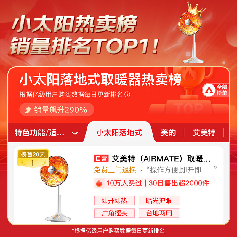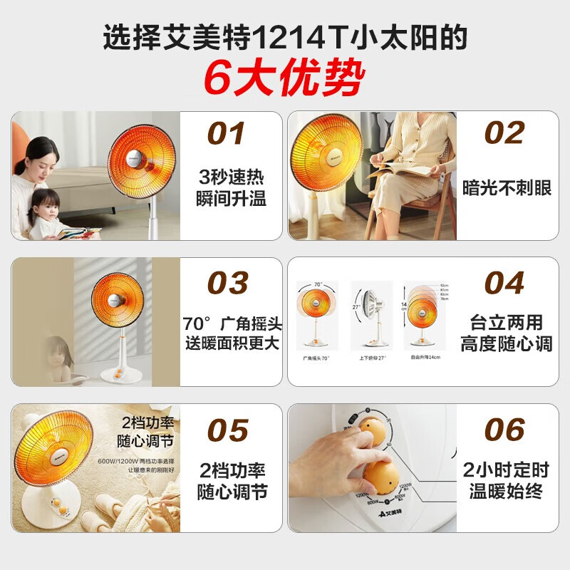 艾美特(AIRMATE)【台地两用】取暖器/小太阳/电暖器/鸟笼电暖气 即热即热家用定时摇头电扇远红外烤火炉