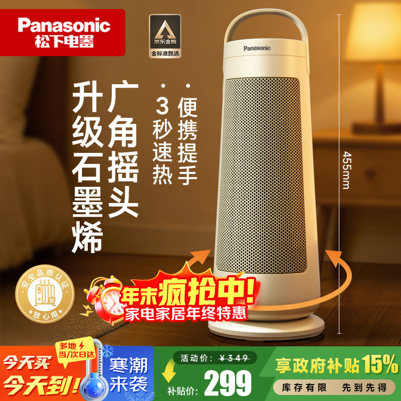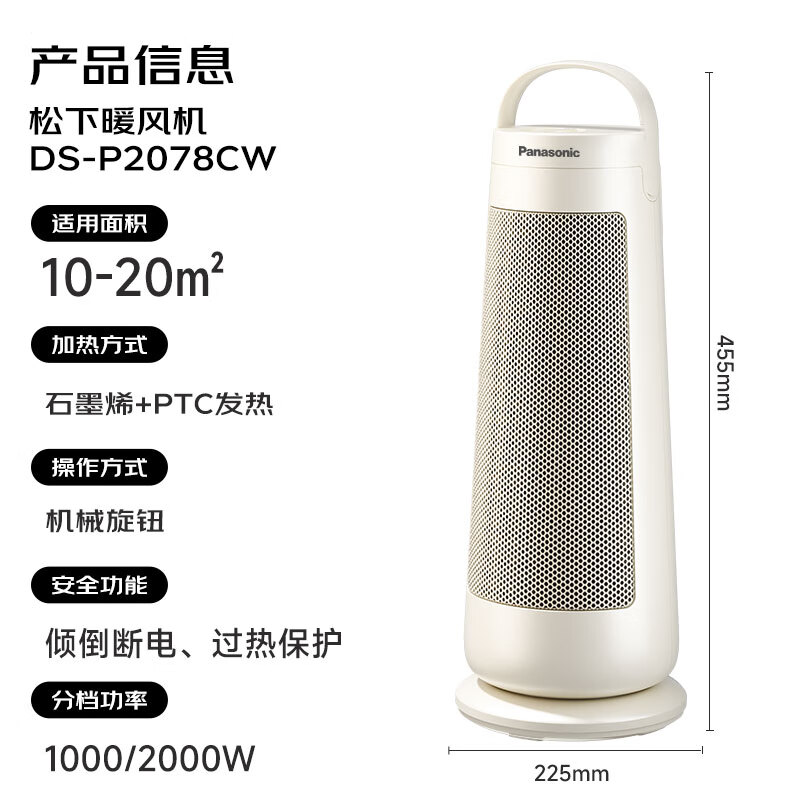 松下(Panasonic)【暖暖塔】暖风机石墨烯取暖器家用电暖器台立式办公室电暖气小型速热摇头电热风小太阳DS-P2078CW
