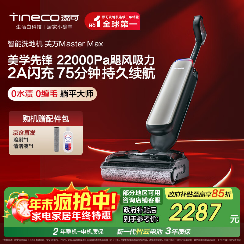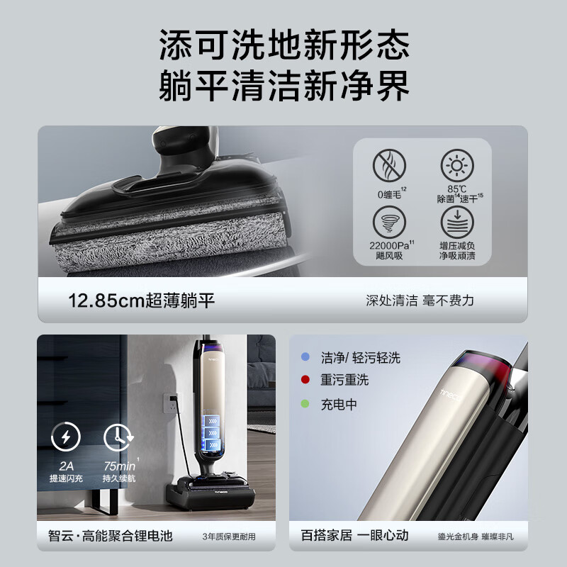 添可 芙万MasterMax艺术家大师系列【0缠毛75分钟长续航 22000PA大吸力】家用洗地机自清洗吸拖一体