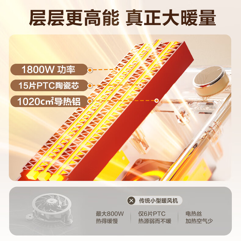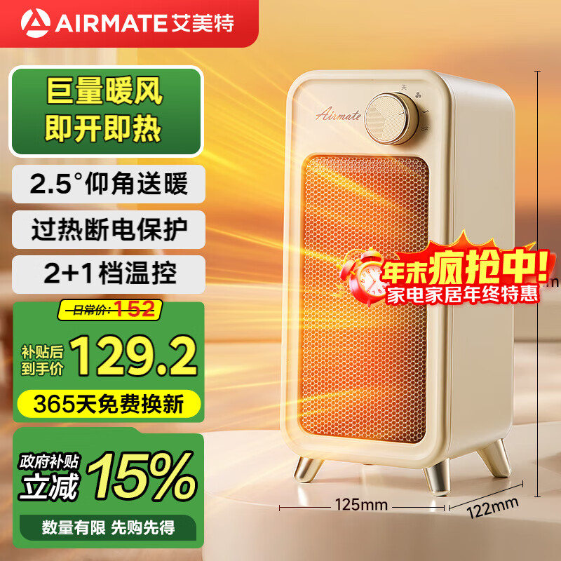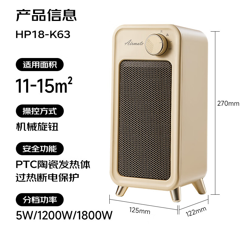 艾美特(AIRMATE)【即开即热】电热取暖器家用暖风机小型桌面热风机速热轻音节能便携卧室办公宿舍暖脚仰角送风K63
