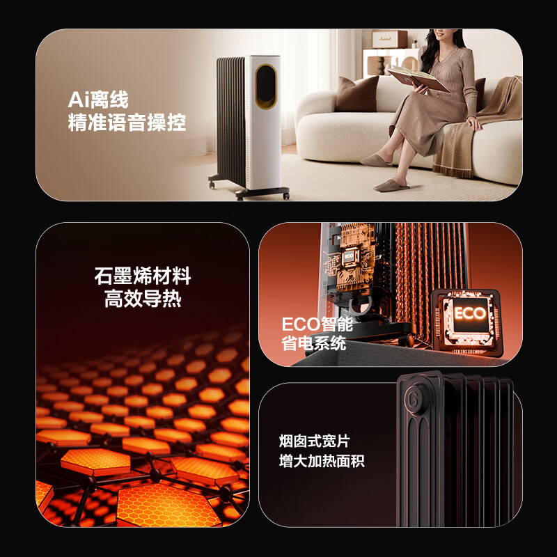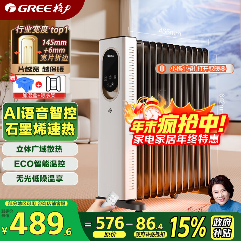 格力暖岁电油汀AI语音石墨烯取暖器家用电暖器电暖气片加热器大面积全屋升温速热烤火炉NY23-X6022BV-M