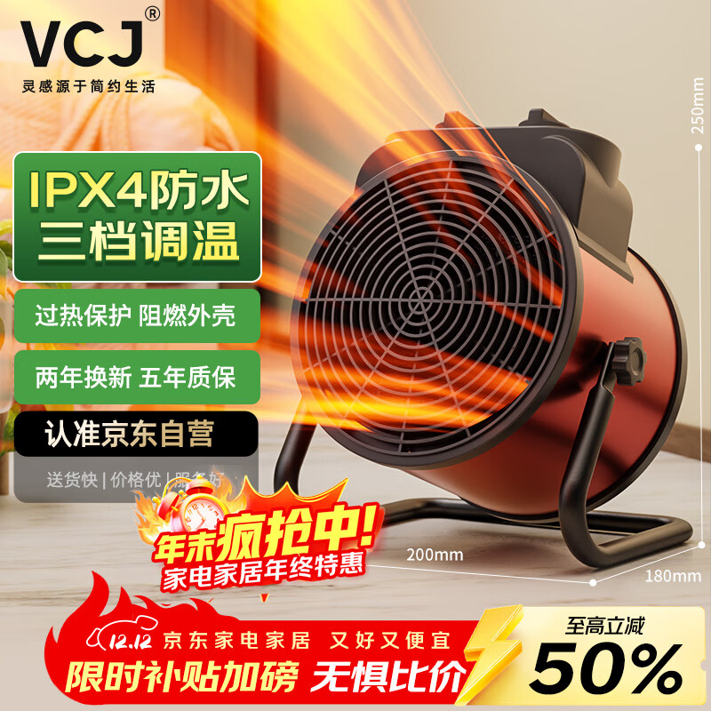 VCJ暖风机工业取暖器家用节能小钢炮大功率热风机速热省电暖器2500W PTC陶瓷发热MGD2.5-P