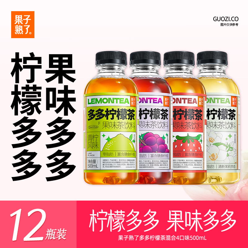 果子熟了多多柠檬茶 0脂肪茶饮料 混合口味 500mL*12瓶 聚会分享装