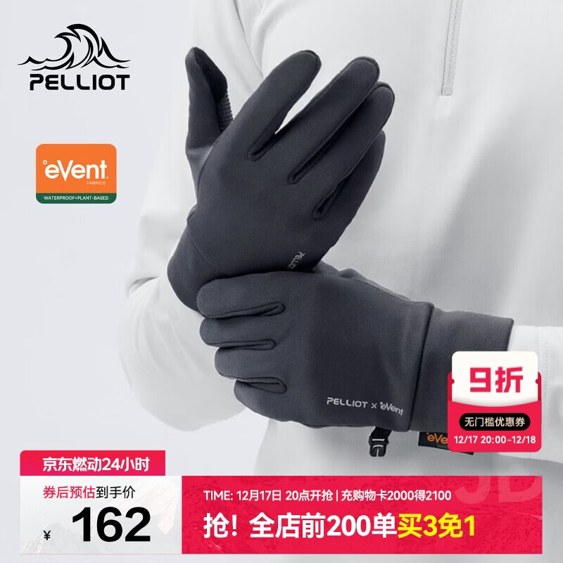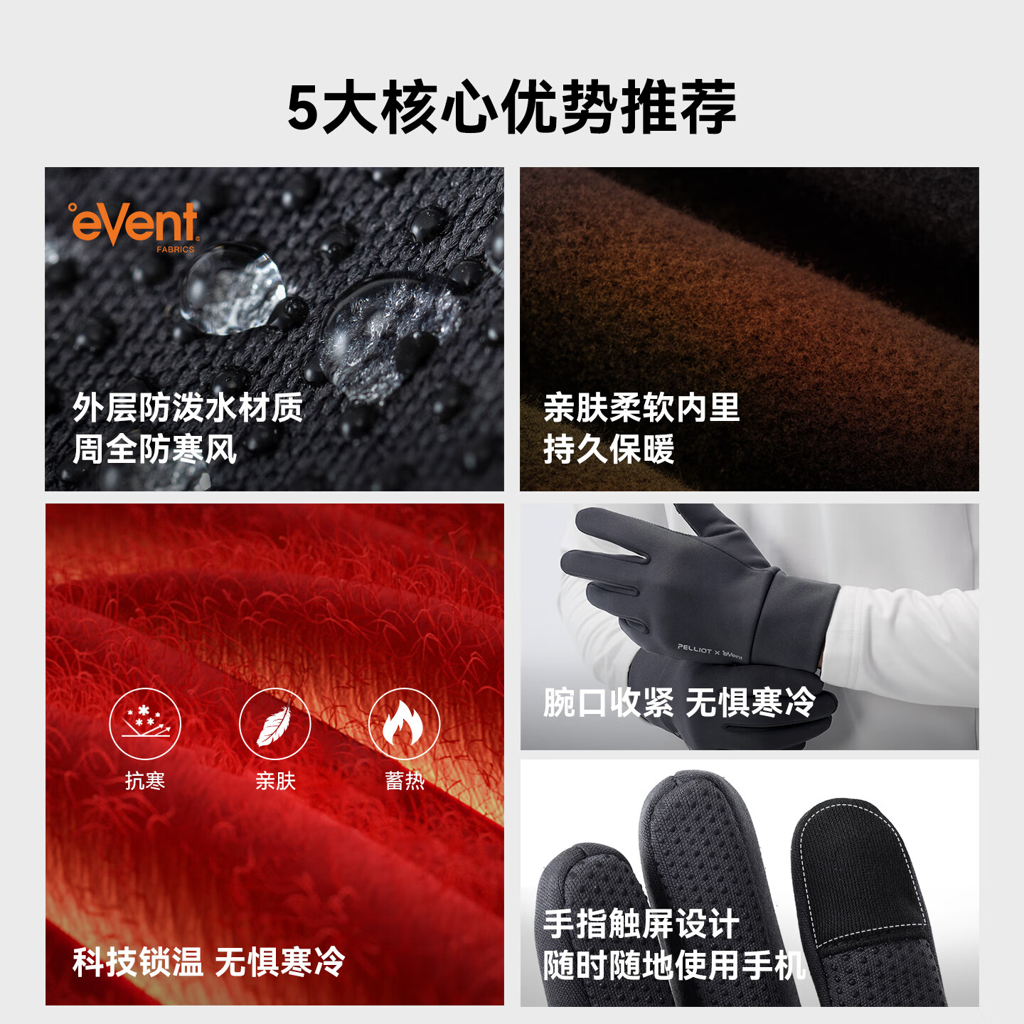 伯希和(Pelliot)户外手套冬季骑行eVent防泼水登山防风抓绒保暖164331002灰色L
