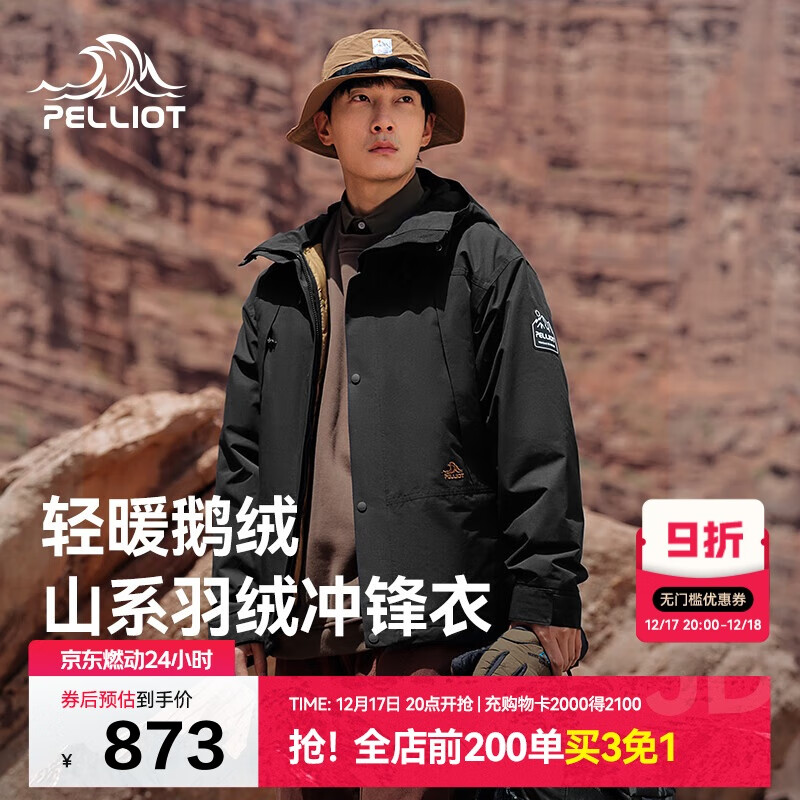 伯希和(Pelliot)[成毅同款]山海羽绒三合一冲锋衣男女鹅绒保暖外套12240128黑L