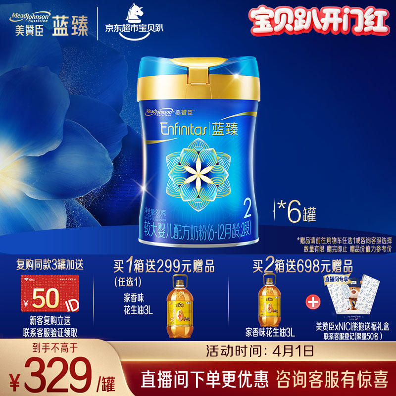美赞臣蓝臻 较大婴儿配方奶粉 2段(6-12月)820g*6罐 实证乳铁蛋白