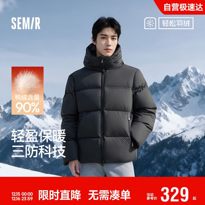森马(Semir)轻松羽绒|羽绒服男三防90绒羽绒外套冬25连帽抗静电109725113202
