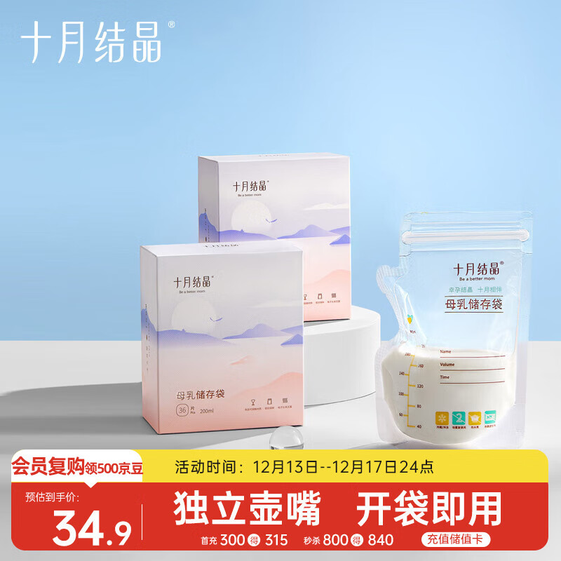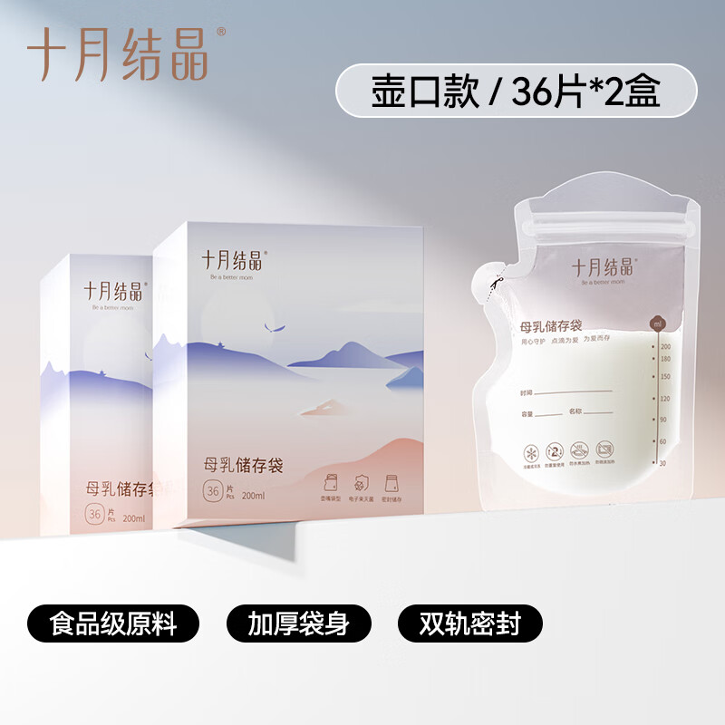 十月结晶储存奶袋母乳保鲜袋200ML36支*2 壶口款随机发货