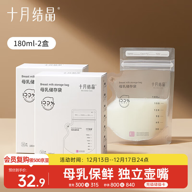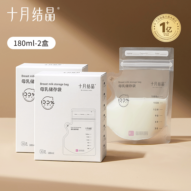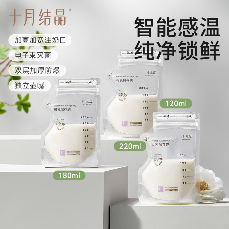 十月结晶储奶袋壶口母乳保鲜袋一次性存奶储存袋感温分装袋180ML-2盒-60片