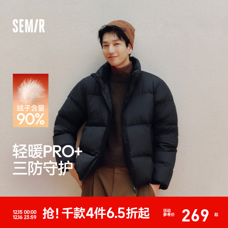 今日推荐:森马(Semir)轻松羽绒|羽绒服男三防外套发热保暖面包服冬2025新款抗静电 【高倍充绒】黑色(灰鸭绒)90001 L