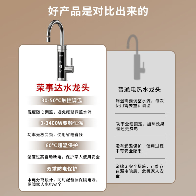 荣事达(Royalstar)电热水龙头热水器加热水龙头即热式速热水龙头变频恒温厨卫两用下进水