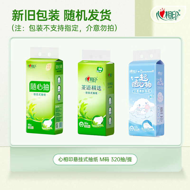 心相印抽纸悬挂式320抽茶语壁挂卫生纸四层大包面巾纸厕纸擦手抽纸 4大提整箱送挂钩