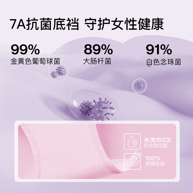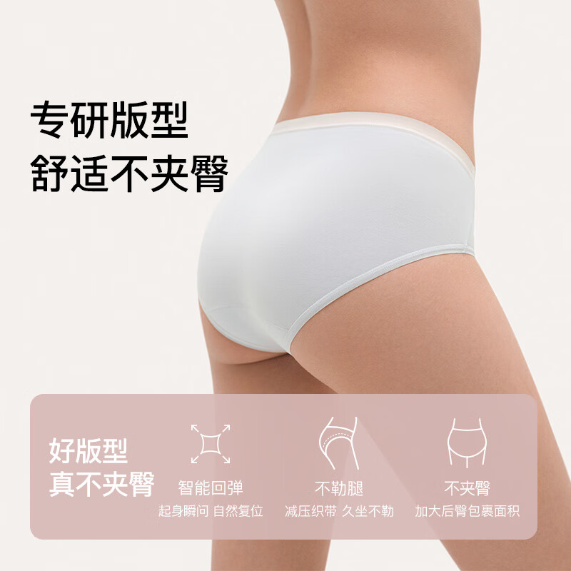 ubras【纯棉】7A抗菌裆透气舒适女士内裤女中腰三角裤(3条装)