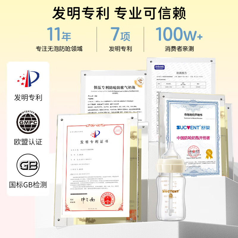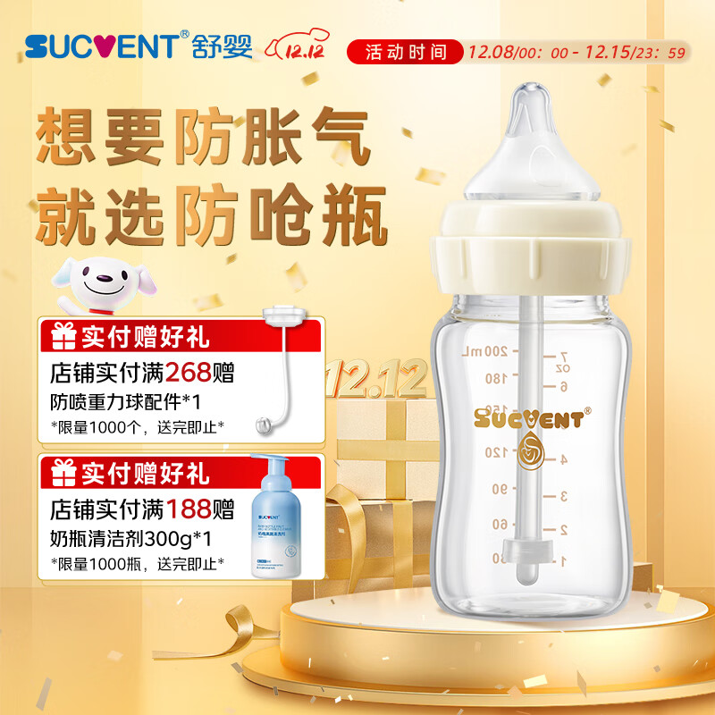 舒婴奶瓶防胀气防呛奶新生儿宝宝玻璃仿母乳喂养断奶0-3个月200ml