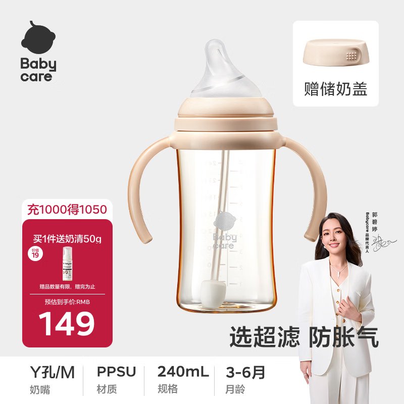 babycare超滤奶瓶 PPSU防呛防喷奶防胀气新生儿歪头仿母乳240ml M嘴3-6月