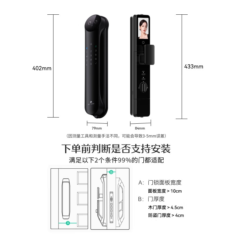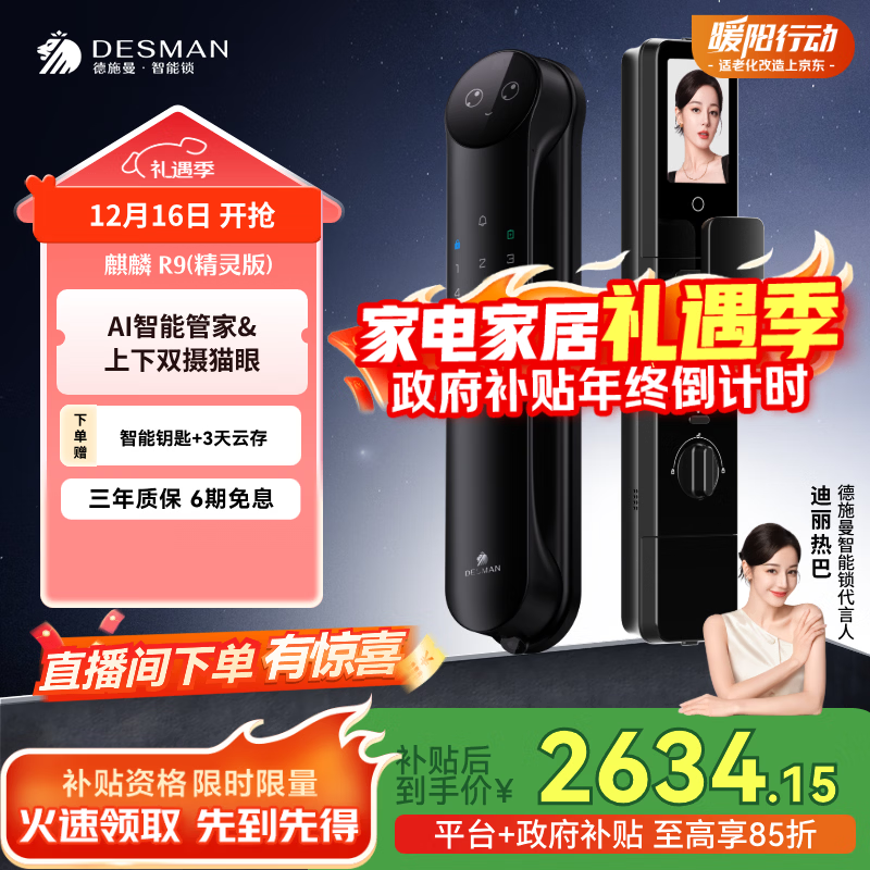 德施曼(DESMAN)Ai智能门锁3D人脸识别可视猫眼双摄双屏小圆脸麒麟R9精灵版